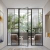 Η εσωτερική πόρτα FΡΑΜΕ 40U αποτελείται από στιβαρό κάσσωμα αλουμινίου σχήματος “U” το οποίο εφαρμόζει κυρίως σε γυάλινα χωρίσματα και φύλλο από γυαλί με περιμετρικό minimal αλουμίνιο διατομής 33mm × 16mm.