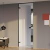 Πόρτα με κάσσωμα αλουμινίου 80mm χωρίς περιμετρική κορνίζα. Το φύλλο ανοίγει και κλείνει με πλαϊνούς μεντεσέδες. Επιλογές κλειδαριών: μαγνητική, μηχανική, έκδοση για WC αλλά και αξεσουάρ συγκράτησης φύλλου “easyclick”.