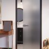 Η πόρτα YPSILON 70 Linear αποτελείται από κάσσωμα αλουμινίου με τηλεσκοπικό αρμοκάλυπτρο που καλύπτει λαμπά τοίχου έως 20cm και εμφανίζει περιμετρική κορνίζα 2cm. Ειδικό κατακόρυφο προφίλ (σωληνωτός μεντεσές) συγκρατεί το γυάλινο φύλλο και εξαρτήματα pivot το ανοίγουν μέχρι και 170 μοίρες. Η πόρτα κλειδώνει με επιλογή κλειδαριών μαγνητική, μηχανική, έκδοση για WC αλλά και αξεσουάρ συγκράτησης φύλλου “easyclick”.